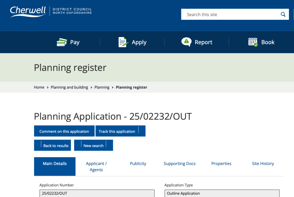 Respond to the consultation, here: https://planningregister.cherwell.gov.uk/Planning/Display/25/02232/OUT#undefined and click on ‘comment on this application’ at the top of the page: