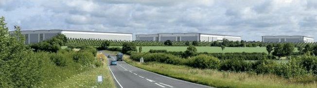 A logistics park of up to approximately 3,000,000 sq ft. similar to Tritax, except it is a whopping five times larger. It would occupy the land opposite from Tritax, across the Baynard’s Green roundabout and adjacent to the M40 at J10: